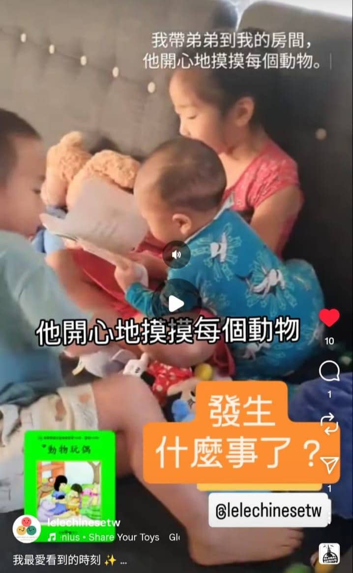 第一遍,他可能只是靜靜聽。 第二遍,他開始跟著你念幾個詞。 到了第三遍,他已經拿起玩具開始演戲;第四遍,他甚至自己主動拿出書,一邊翻一邊「再演一次」。